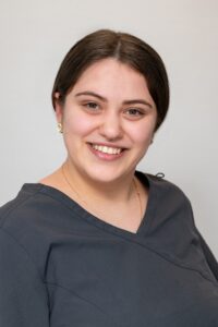 Olena er uddannet tandlæge i Ukraine og krigsflytninge, men arbejder pt. på klinikken som klinikassistent og tandlægens medhjælper, indtil hun får dansk autorisation. Hun lærer dansk ved siden af arbejdet.